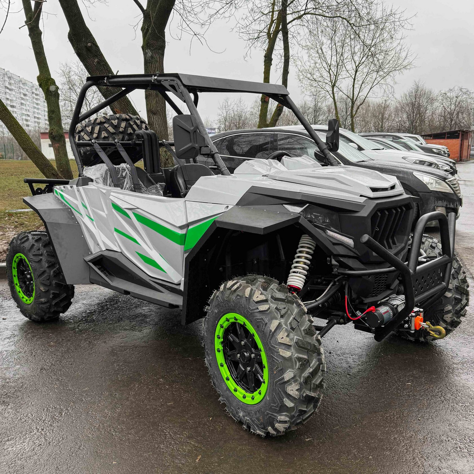 Готовы к комфортному преодолению бездорожья?Наш двухместный багги — идеальный выбор для охоты, рыбалки, экспедиций и экстремальных поездок. Оснащенный мощным одноцилиндровым двигателем (500 см³, 37.5 л.с.) с жидкостным охлаждением, он уверенно преодолевает грязь, песок и снег, работая на доступном бензине АИ-92.Высокая проходимость благодаря:– Вариаторной трансмиссии с переключением между 2WD и 4WD.