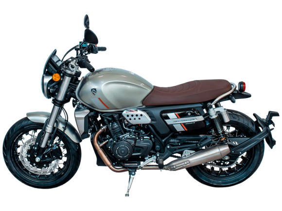 CYCLONE RE401 (SR400-B) 2024 – классик, в котором подчёркнутая простота объединяется с современными технологиями. Данная модель является более продвинутой версией модели RE3 (SR-400) – мотоцикл обладает более современным дизайном, снабжён стильными металлическими накладками на радиатор, а также топливным баком, объём которого увеличен до 20 литров.Двухцилиндровый четырёхтактный двигатель объёмом 401 см3 выдаёт 43 л.с. на 9500 об/мин. Инжекторный впрыск топлива с инжектором BOSCH увеличивает топливную экономичность, а также позволяет добиться высокой приёмистости и неприхотливости агрегата. Жидкостная система охлаждения не допустит перегрева двигателя даже при самом агрессивном вождении. На мотоцикл установлена 6-ступенчатая механическая коробка передач.Максимальная скорость мотоцикла составляет 150 км/ч.RE401 оснащён классическими спицованными колёсами диаметром 17 дюймов. Колёса обуты в бескамерные покрышки TIMSUN. С неровностями дороги эффективно справляются телескопическая вилка перевёрнутого типа спереди и маятник с двумя амортизаторами сзади. Ход передней подвески составляет 130 мм, задней – 81 мм. Оба компонента подвески являются регулируемыми. Эффективное и безопасное замедление с любых скоростей обеспечивают гидравлические дисковые тормоза с ABS спереди и сзади.Клиренс мотоцикла составляет 170 мм. Объём топливного бака – 20 л. Снаряжённая масса – 186 кг.Из дополнительного оборудования можно выделить USB-порт и датчики давления в шинах.Мотоцикл сочетает в себе отличные технические характеристики, комфорт и надёжность, что позволяет вам ощутить настоящую свободу на любой дороге.