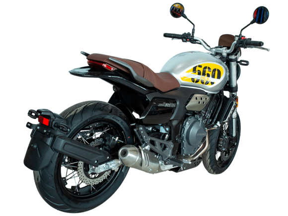 CYCLONE RE5 (SR600) – классик, в котором брутальная простота объединяется с современными технологиями. Данная модель является самой крупнокубатурной среди классических мотоциклов компании CYCLONE.Двухцилиндровый четырёхтактный двигатель объёмом 550 см3 выдаёт 60 л.с. на 8500 об/мин. Максимальный крутящий момент достигается на 6500 об/мин и составляет 55 Н·м. Инжекторный впрыск топлива с блоком управления BOSCH увеличивает топливную экономичность, а также позволяет добиться высокой приёмистости и неприхотливости агрегата. Жидкостная система охлаждения не допустит перегрева двигателя даже при самом агрессивном вождении. На мотоцикл установлена 6-ступенчатая механическая коробка передач.Максимальная скорость мотоцикла составляет 170 км/ч.RE5 оснащён классическими спицевыми колёсами диаметром 17 дюймов. Колёса обуты в бескамерные покрышки от легендарной фирмы PIRELLI. С неровностями дороги эффективно справляются телескопическая вилка перевёрнутого типа спереди и маятник с моноамортизатором сзади. Ход передней подвески составляет 120 мм, задней – 50 мм. Оба компонента подвески являются регулируемыми. Эффективное и безопасное замедление с любых скоростей обеспечивают гидравлические дисковые тормоза с ABS спереди и сзади. Тормозные системы произведены известной испанской фирмой J.JUAN (входящей в легендарный холдинг BREMBO).Клиренс мотоцикла составляет 155 мм. Объём топливного бака – 20 л. Снаряжённая масса – 204 кг.Из дополнительного оборудования можно выделить USB-порт и датчики давления в шинах.Мотоцикл сочетает в себе отличные технические характеристики, комфорт и надёжность, что позволяет вам ощутить настоящую свободу на любой дороге.