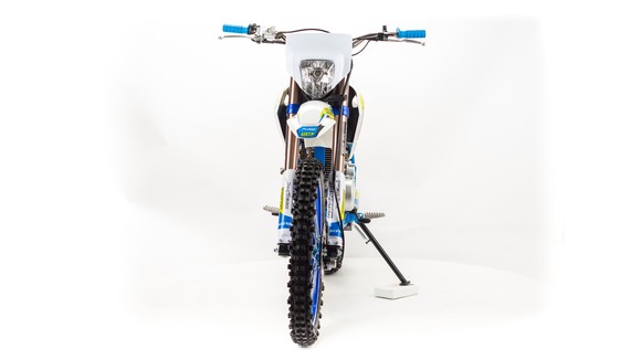 Топовый мотоцикл линейки PWR выглядит соответствующе — стильно и солидно. Без лишнего пафоса, но с уверенностью в собственном превосходстве над аналогами. Как и другие модели PWR, кроссовq 450 кубовый мотоцикл покрыт комбинированным пластиком, который не ломается при сгибании. Все стыки идеально подогнаны, наклейки ровные. Кроссовый мотоцикл доступен в синем цвете — внешний вид кросса подчёркивает несгибаемый характер и нацеленность на бескомпромиссную спортивную борьбу. Длина FS450 NC — 2160 мм, высота по седлу — 960 мм. Хорошее соотношение, которое подойдёт большинству пользователей среднего и большого роста.На кроссовый мотоцикл установлен руль переменного сечения (28 мм в месте крепления и 22 мм на концах под грипсами) с низким подъёмом и с подушкой IGP.