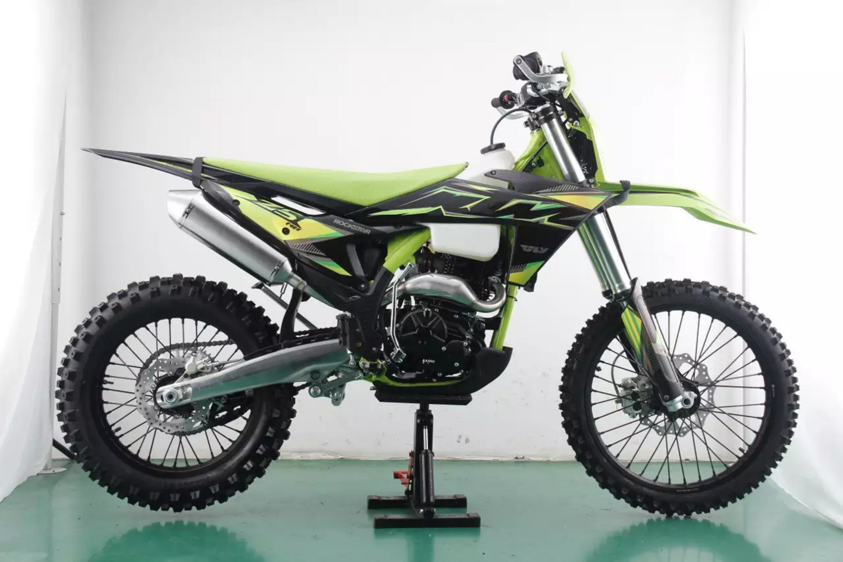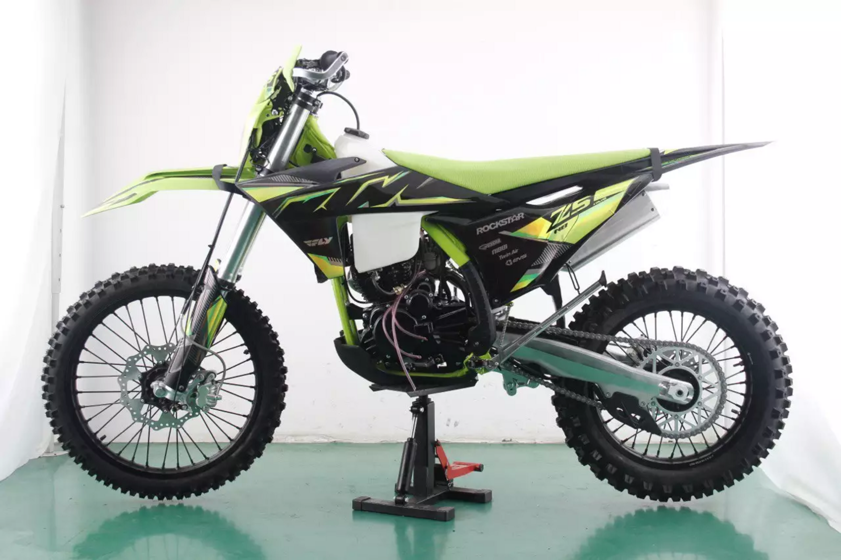 Racer Z5 – это мощный и надежный мотоцикл, созданный для преодоления самых сложных маршрутов. Оснащенный двигателем ZONGSHEN NB300 F с воздушным охлаждением, он выдает 29 лошадиных сил, обеспечивая уверенную динамику на любых покрытиях. Пятиступенчатая коробка передач с электро- и кикстартером позволяет легко запускать двигатель и точно контролировать тягу.Прочная рама NEW K10, усиленные алюминиевые маятник и прогрессия делают конструкцию жесткой и устойчивой к нагрузкам. Передняя вилка перевернутого типа с ходом 270 мм и задний амортизатор с регулировками обеспечивают отличную управляемость и комфорт на пересеченной местности. Усиленные спицы, антибуксаторы и мощная цепь CHOHO X-RING 520 гарантируют долговечность и надежность в экстремальных условиях.Колеса с размерностью 21 дюйм спереди и 18 сзади комплектуются спортивными шинами 80/100-21 и 120/90-18. Высокопроизводительная тормозная система включает регулируемые рычаги, а анодированный алюминиевый рычаг КПП и регулируемая педаль тормоза повышают точность управления.Racer Z5 оснащен спортивным карбюратором NIBBI PWK34, увеличенным топливным баком и рефленым антискользящим сиденьем, что делает его готовым к длительным поездкам. Руль из авиационного алюминия 7075 с подушкой и армированные защитные накладки на руки добавляют удобства и безопасности.Освещение представлено пятидиодной фарой с ходовыми огнями, а цифровой спидометр предоставляет всю необходимую информацию. Глушитель из алюминия с нержавеющим резонатором дополняет агрессивный стиль и обеспечивает мощный выхлоп. Этот мотоцикл сочетает в себе силу, технологичность и надежность, делая его отличным выбором для любителей экстремального катания.
