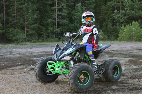 Подростковый квадроцикл MOTAX ATV Grizlik Premium одростковый квадроцикл в утилитарном дизайне, на больших 8-дюймовых колёсах с хорошими грунтозацепами. Подходит для детей и подростков от 6 до 16 лет.Квадроцикл оборудован тяговитым 4-х тактным двигателем, бесступенчатой полуавтоматической трансмиссией с одной передачей вперёд и передачей заднего хода. Также квадроцикл имеет богатую базовую комплектацию: он оборудован электрическим стартером, пультом дистанционного глушения и запуска двигателя, механическим ограничителем скорости, усиленным передним и задним багажником, лебедкой, комфортными гидравлическими амортизаторами, яркими передними светодиодными фарами и светодиодным задним фонарем со стоп сигналом, металлическим топливным баком, усиленной 428 приводной цепью. Передняя подвеска на независимых рычагах со съемными шаровыми опорами, что делает его очень комфортным и ремонтопригодным.Двигатель 125 кубов 4-х тактный.Мощность 10 л.с.Максимальная скорость 65 км/ч.Максимальная нагрузка 140 кг.Передние тормоза дисковыеЗадние тормоза дисковые гидравлические.