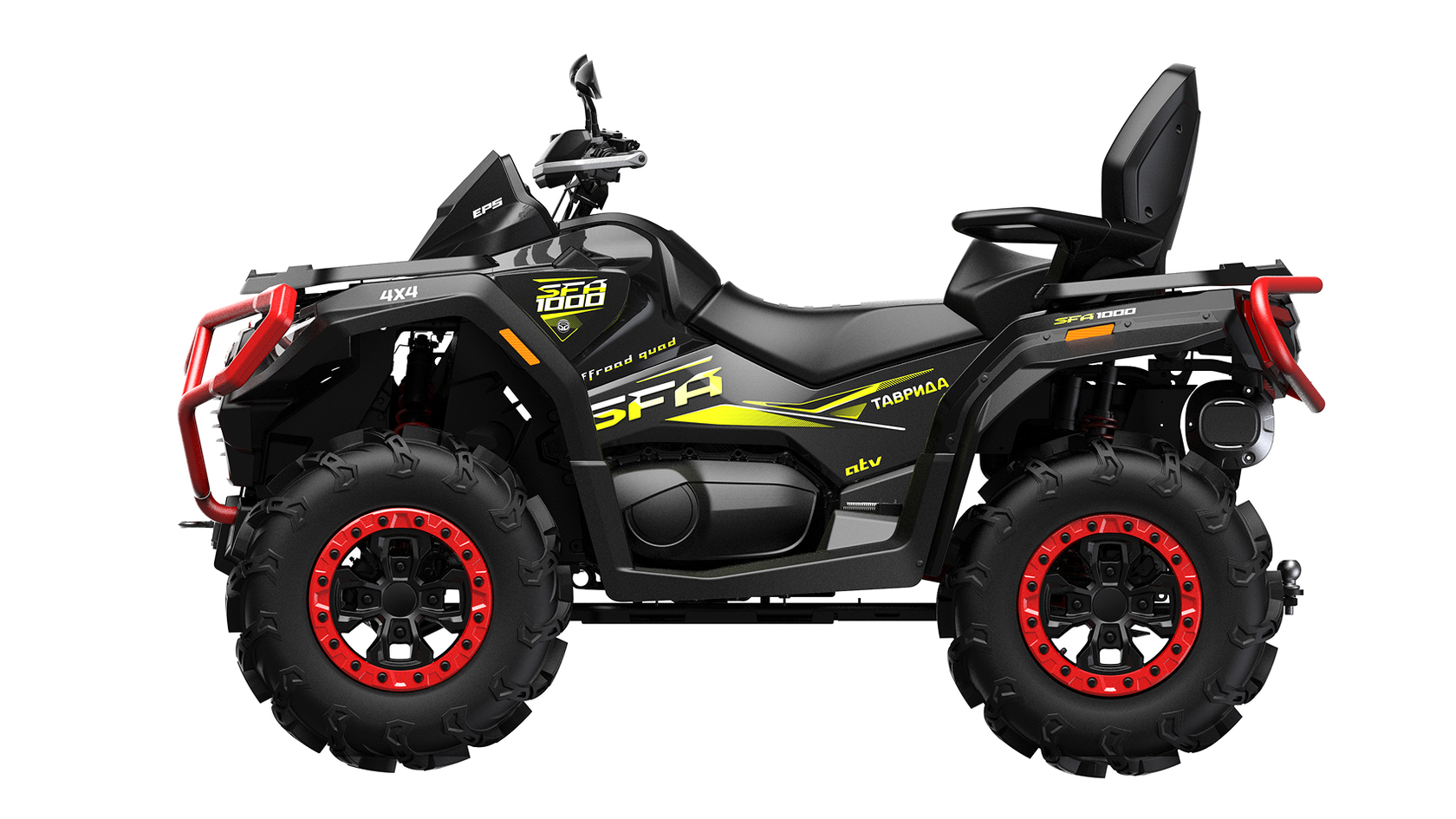 «ТАВРИДА SFA 1000» – новый современный двухместный российский квадроцикл, оснащённый литровым двигателем мощностью 95 л.с., созданный для тех, кто ценит динамику, силу и маневренность, хочет получить максимальные эмоции от управления совершенной техникой.При создании и производстве квадроцикла применены новейшие технологии, которые обеспечивают современный уровень качества и максимальную безопасность эксплуатации весь период срока службы квадроцикла.«ТАВРИДА SFA 1000» подходит как для опытных райдеров, так и для новичков, что делает его универсальным выбором. Квадроциклы «ТАВРИДА SFA 1000» демонстрируют отличную проходимость в российских суровых условиях, благодаря независимой подвеске, высокому дорожному просвету и шинам, которые обеспечивают надежное сцепление с грунтом.Выбирая «ТАВРИДА SFA 1000», Вы выбираете качество и уверенностьДвигатель 976 см³, 95 л.с.Оснащённый современным инжекторным двигателем, квадроцикл демонстрирует отличную динамику и уверенную тягу в любых условиях.– Экономичный расход топлива