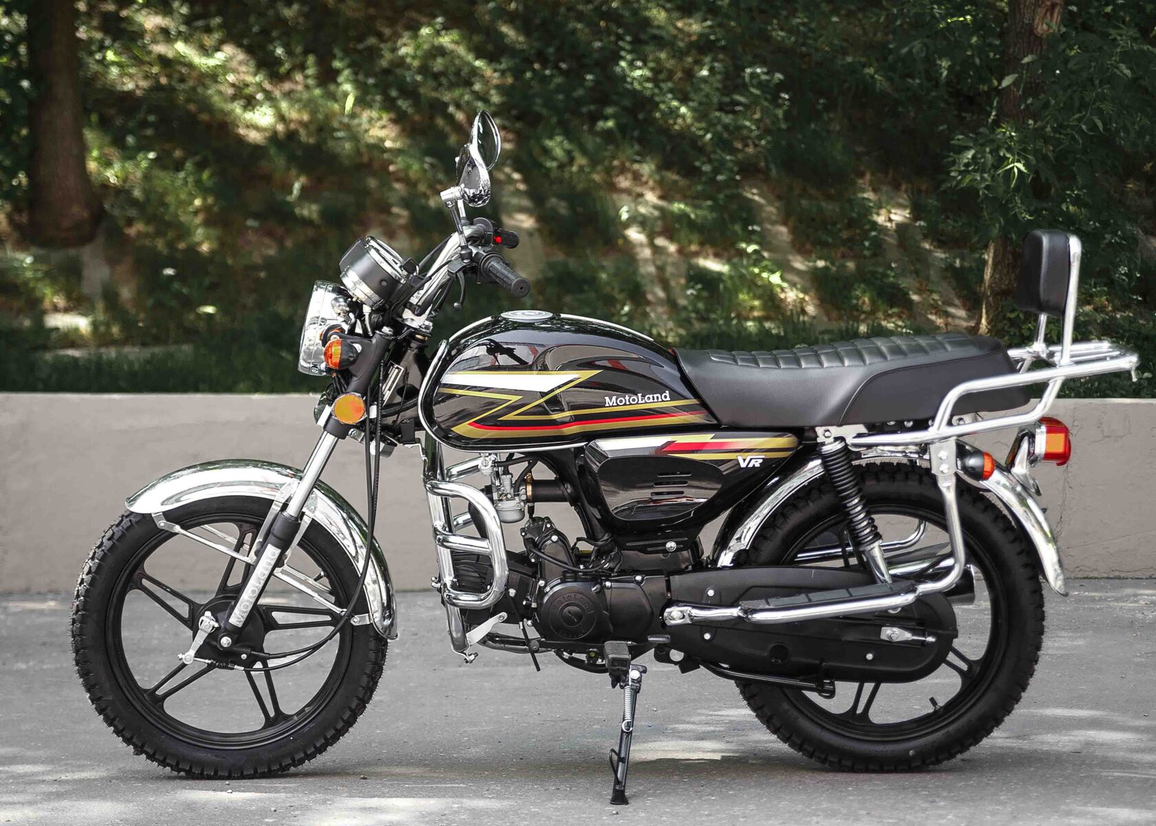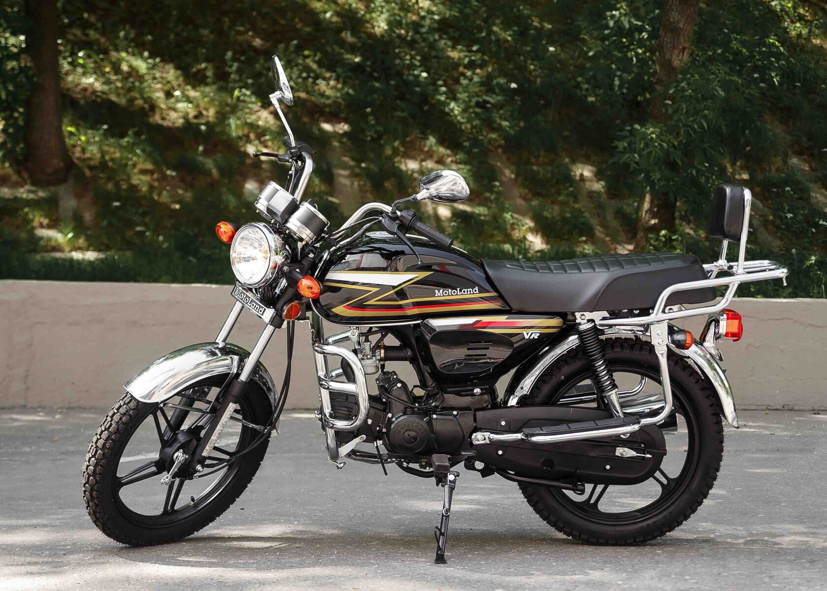 Обновленная версия мопеда альфа от мотолэнда. В мопеде Motoland Alpha VR11 удлиненная база. Это делает посадку более удобной даже для высоких людей, выемки на баке очень удобны для коленей. Для удобства пассажира присутствует спинка.Увеличенный объем бензобака , его длина стала на 10 см длиннее ранних моделей. Мотоцикл поставляется на 17 дюймовых легкосплавных дисках с шинами увеличенного размера . Спереди стоит шина 2,75 (обычно 2,5) сзади шина 3,00 (обычно 2,75). Внешний вид Motoland VR 11 стал более солидным, мопед уже выглядит как взрослый мотоцикл.Мопед с завода поставляется с 50 кубовой поршневой, в подарок мы предоставляем поршневую 110сс. При сборке мотоцикла ее нужно установить. Тк коробка передач и карбюратор PZ19 рассчитаны на работу со 110 поршневой (на 50сс поршневой свечу будет заливать).Все маркировки мопеда- рама и двигатель как у 50сс мопеда. (тк он им и является). После замены поршневой внешне никак не видно его кубатуру. У мотоцикла железные крылья, которые заметно крепче пластиковых, однако могут со временем начать ржаветь. Максимальная скорость до 85 км/час. Хорошее качество сборки.