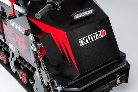 • 12. Мотобуксировщики IKUDZO имеют идеальную балансировку и нагрузку на гусеницу. Двигатель размещён так, что даже без дополнительного груза на мотособаке давление на снег будет равномерно, что значительно повышает проходимость!