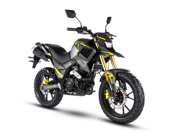 Комплектация Мотоцикл комплектуется всем необходимым оборудованием для комфортной и безопасной эксплуатации на городских и проселочных дорогах: приборная панель, зеркала, световое оборудование, электростартер (двигатель также можно завести при помощи кик-стартера), защитный кожух цепи, складные подножки пассажира и крепкий багажник. Тормоза барабанные.