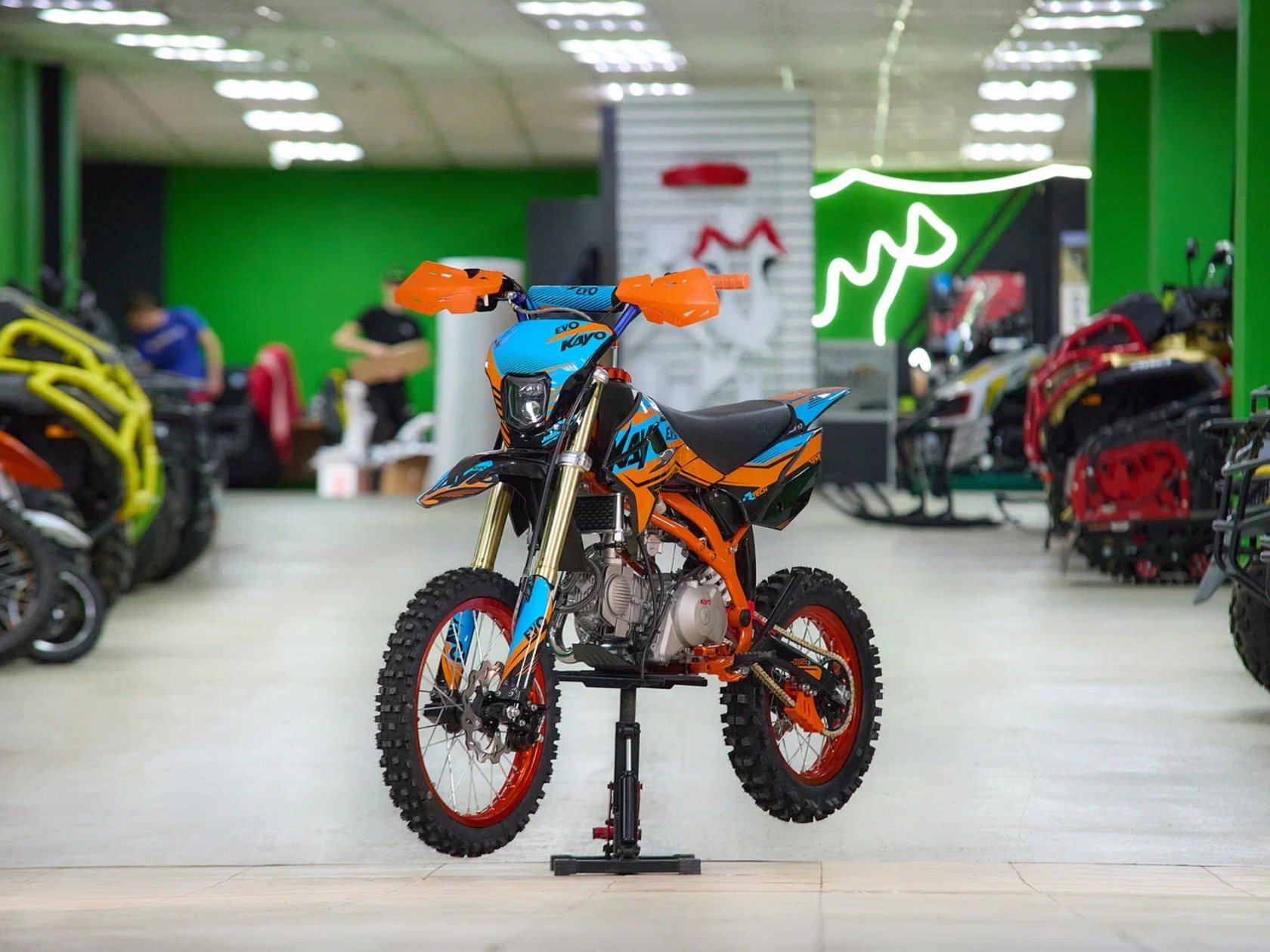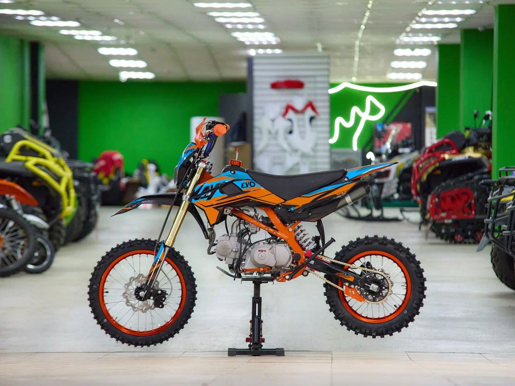 Главная ... Питбайки Питбайк KAYO EVOLUTION YX140EM 17/14 KRZ (механ. сцепл., эл. стартер 2024 г.)