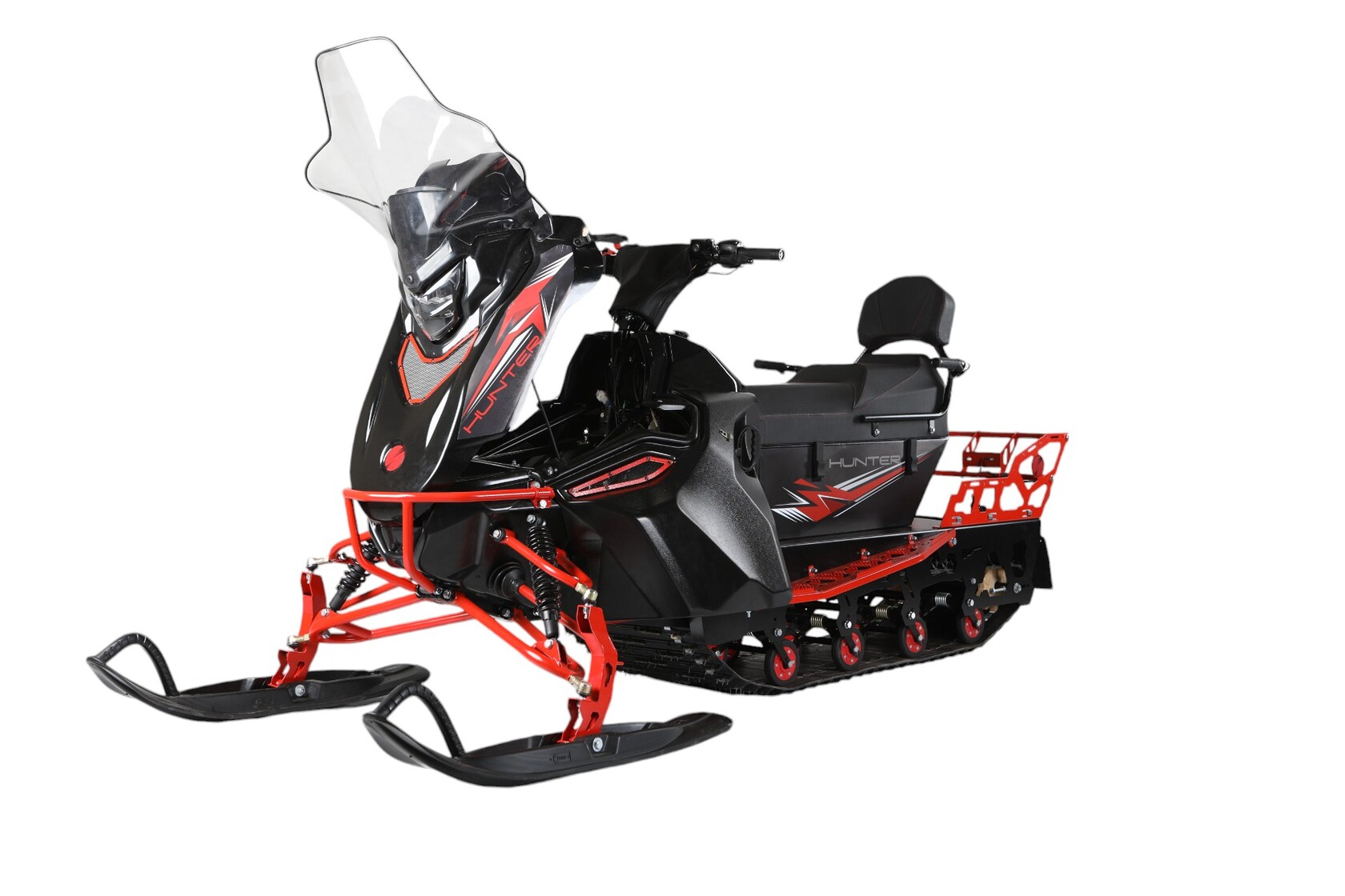 Компания IKUDZO представляет серию снегоходов IKUDZO HUNTER. Снегоходы IKUDZO HUNTER, это современный снегоход на пятисотой гусенице с четырехтактными двигателем.Компания IKUDZO использует только самые качественные двигателя YAMAHA, HONDA, ZONGSHEN, LONCIN и LIFAN.Снегоход созданный при участии ВНИИ ТЕСТ и имеет современную пространственную раму и уникальную подвеску IKUDZO.Новая технология создания цельно-металлической пространственной рамы, на базе коррозионностойкой стали. Рама имеет минимум сварных швов, что значительно увеличило срок службы и защиту от коррозии.Снегоход IKUDZO имеет современную многорычажную подвеску с регулируемыми амортизаторами.Облегченные пластиковые лыжи из морозостойкого пластика.Капот из высококачественного, морозостойкого пластика, состоит из нескольких составных частей, что позволяет без проблем, получить доступ к любым узлам снегохода для обслуживания. А также, в случае повреждений вам достаточно заменить отдельный элемент, что значительно снижает стоимость обслуживания. Мощная, светодиодная фара имеет плотный световой поток и работает в двух положениях ближний и дальний свет.Ветровое стекло, не только защитит Вас от потока ветра но и сохранит свою целость даже в экстренных ситуациях, благодаря своей гибкости.Руль снегохода ИКУДЗО, имеет приятные, эргономичные ручки с подогревом, а также современные блоки управления.Современная панель приборов, имеет множество функций, включая показания уровня топлива, скорости, пробега, температуры двигателя и множество других функций.Подножки снегохода сделаны так, чтобы не набивался снег и ваши ноки уверенно держались благодаря специально созданным выступам.Отдельная гордость компании IKUDZO это уникальная подвеска. Запатентованное строение катков с японскими подшипниками значительно увеличивает срок эксплуатации без необходимости частого обслуживания. Благодаря открытому пространству, подвеска IKUDZO не забивается снегоход и не боится наледи.• Двигатель: 20 л.с. 4х тактный (c Японским карбюратором) ZONGSHEN/LONCIN/LIFAN
