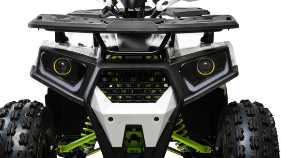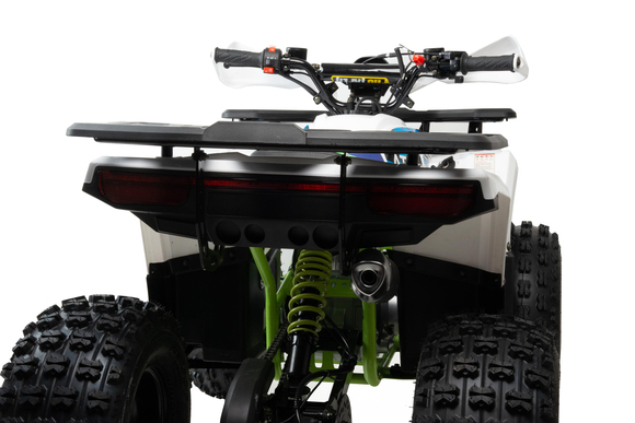 Квадроцикл Motoland 125 SHARK - новинка 2022 года. Техника оснащена двигателем на 125 кубических сантиметров и автоматической трансмиссией.Motoland 125 SHARK можно начинать осваивать уже с 6 лет под присмотром взрослых (в комплекте пульт родительского контроля, чека безопасности и ограничитель курка газа) и самостоятельно - с 12 лет.Комплектация:- Передняя линзованная фара (ближний, дальний)