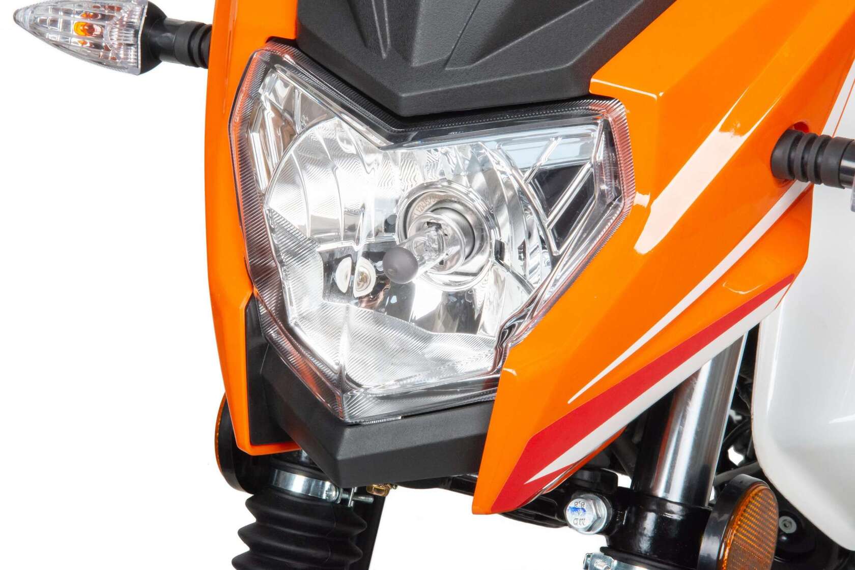 Мопед полностью отвечает требованиям к безопасному движению по городу и за городом: оснащен фарой дальнего и ближнего света, поворотниками, стоп-сигналом, звуковым сигналом, зеркалами заднего вида, габаритными светоотражателями.