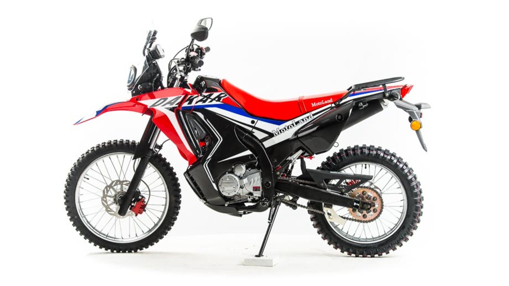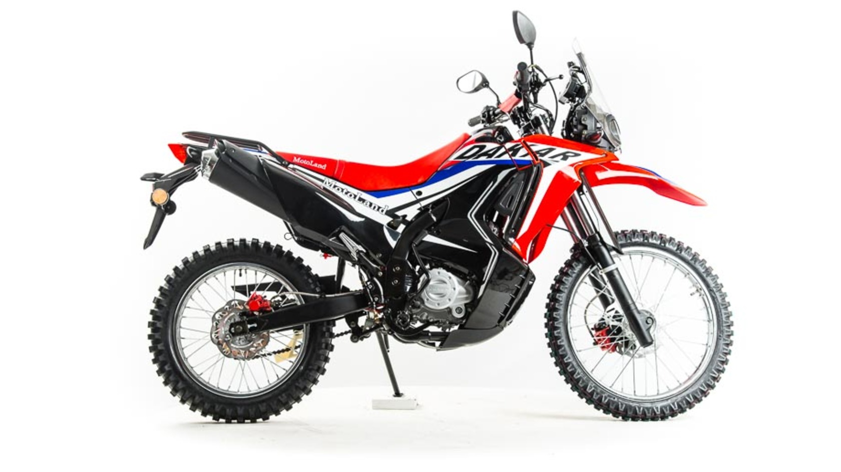 Новинка 2020 года - Мотоцикл Motoland DAKAR 250 ST.Данный мотоцикл прост в управлении и неприхотлив в обслуживании и подходит мотолюбителям Эндуро любого возраста,и опыта вождения, которым нужна техника для поездок из точки А в точку Б и обратно по дорогам и легкому бездорожью.Motoland DAKAR 250 ST оснащен одноцилиндровым четырехтактным двигателем 172FMM мощностью 21 л. с. и объемом 250 см³ с воздушным охлаждением. Установлен карбюратор PZ 30 с ускорительным насосом увеличивает скорость разгона.Для запуска двигателя можно использовать электростартер или кикстартер.Механическая трансмиссия содержит 5 передач.Мотоцикл оснащен надежными передними и задними тормозами с двух поршневыми тормозными суппортами.Колёса спицованные, размер заднего колеса — 18 дюймов, переднего — 21 дюйм. Весит 120 кг, выдерживает нагрузку до 150 кг.У нас Вы можете купить этот мотоцикл с бесплатной доставкой по РФ и гарантией до года. Также его можно приобрести в рассрочку или в кредит.